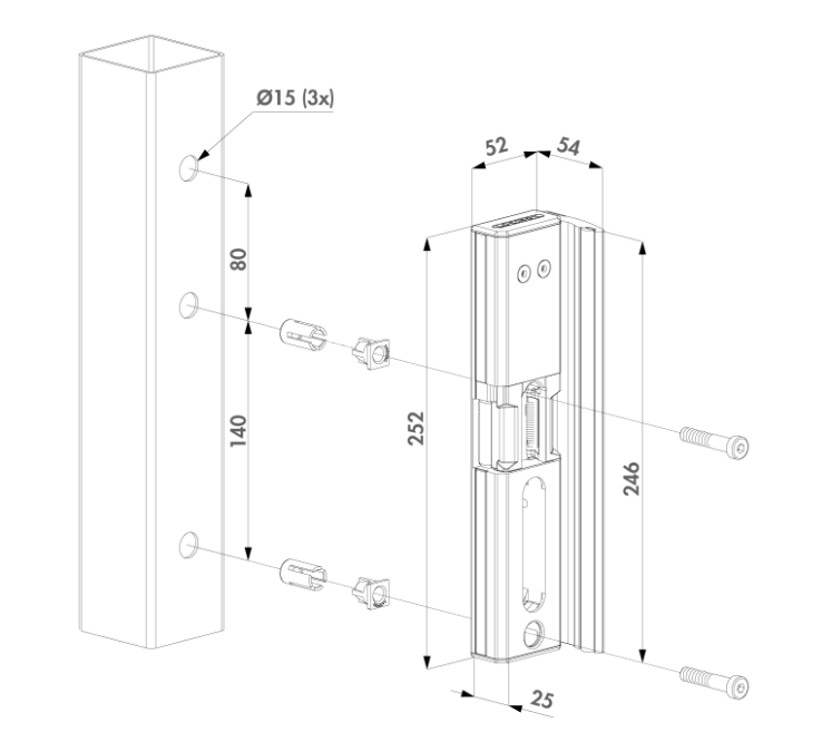 - Adjustable for gate profiles: 1-9/16" - 2-3/8" depth