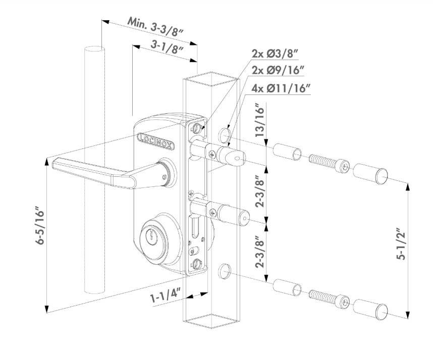 - The lock box requires a 3-3/8" spacing to the first picket, fitting nicely into most gates